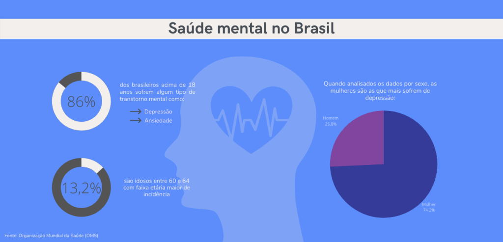 Os transtornos mentais atingem mais de 20 milhões de brasileiros atualmente, dando ao país o título de mais ansioso do mundo, de acordo com a Organização Mundial da Saúde (OMS), e o quinto mais depressivo.