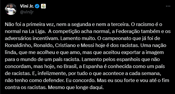 Fonte: Twitter @vinijr