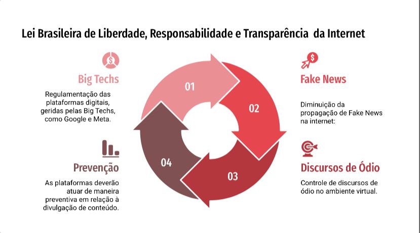 O PL 2630/2020, também conhecido como PL das Fake News, discute a regulamentação das plataformas digitais e opõe interesses de diversos grupos políticos e setores da sociedade. De um lado, há quem afirme que o objetivo da proposta é controlar conteúdos que contenham notícias falsas, de outro, há quem acredite que se trata de censura e o fim da liberdade de expressão. Todos os setores econômicos são regulados, seja ele jornal impresso, jornal televisivo ou a venda de medicamentos por exemplo, o setor das big techs também precisa de regulamentação como qualquer outro, então regulamentar um setor é uma atividade essencial do estado e natural, o modo como a regulamentação ocorre é que determina. A legislação proposta não aplicará sanções a empresas cujas atividades sejam e-commerce, plataformas de vídeo como o Zoom, enciclopédias online. O texto introduz uma série de medidas e impõe obrigações às grandes empresas, tendo como principal objetivo introduzir a obrigatoriedade da moderação de conteúdos publicados na Internet, a fim de identificar, deletar ou sinalizar contas ou publicações com conteúdo considerado criminoso. No mundo não virtual, essas características já são observadas na constituição por exemplo no artigo V em que em que são tratados os direitos e também deveres de todos os cidadãos. O PL das Fake News tem por objetivo fazer com que esse tipo de parâmetro fique claro também no mundo virtual, online, a lei atual como citada a sim segundo diversos juristas e algumas decisões já tomadas pelas autoridades enquadra o mundo virtual, outros interpretam que não, portanto criar uma regulamentação clara é essencial. A lei visa criar parâmetros e facilitar o enquadramento legal já existente no mundo virtual, os pontos que se destacam são: Proibição contas falsas, utilização de “bots”, Limitação no alcance de mensagens altamente compartilhadas; obriga a identificação dos usuários que patrocinam o conteúdo publicado (retomamos a constituição que é vedado o anonimato), sede mínima em território nacional da empresa, pois se ela opera no país, é necessário que ela também possa responder no mesmo e criação de punições específicas para descumprimento da lei. Para garantir o cumprimento da lei, o que está proposto é que seja criado um órgão autônomo para fiscalizar os provedores de internet, ou seja, a criação do Conselho de Transparência e Responsabilidade da Internet. Algo como a Anatel ou a Aneel. Esta agência seria responsável por iniciar processos administrativos e aplicar as punições e sansões de forma administrativa e provocando o judiciário quando necessário. Ao entrar em funcionamento a lei deve sim alterar minimante o jogo político brasileiro, pois hoje existe uma série de políticos que fazem uso dessa brecha legal para publicar uma série de conteúdos que se fossem escritos em um jornal tradicional ou veiculados em um canal de televisão nem chegariam ao ponto de ir ao ar ou serem impressos e caso fossem seriam responsabilizados legalmente até tendo que publicar retratações. Portanto é dever do estado e não do governo regulamentar, existe muitas vezes uma confusão com esses conceitos, o atual governo pode propor um projeto de lei ou alterações em leis existentes, mas em estados democráticos existem instituições e categorias que são de “estado” existem independente da vontade política do ocupante do planalto, as instituições de estado existem para garantir e balizar o funcionamento da sociedade, do governo de plantão e da economia. As big techs são acusadas de afrontar o estado ou pressionar, lob é algo natural na política e faz parte do jogo, tanto que muitos países já regulamentarem como essa prática pode ser feita, o Brasil não tomou tal iniciativa. O que acontece é que empresas com interesses vão usar os mecanismo a sua disposição para conseguir regulamentações que favorecem a si, a função do estado a propor qualquer lei, regra ou projeto é fazer sua lição de casa antes olhar se já existente regulamentação semelhante internacional onde ocorreu, como ocorreu, se deu certo ou se deu errado, a partir disso pensar a realidade local e a partir disso propor algo e estar aberto a negociação pois não necessariamente sua vontade original prevalecerá, porém é ter noção do que é o mínimo que você quer alcançar com aquela iniciativa e saber que qualquer política ou lei que seja pode ser trabalhada em um ciclo que depois que foi implementado pode vir a sofrer ajustes. A função do estado e a legislação de forma ideal tem de ser no sentido de regulamentar criar regras de funcionamento e operação, não é ser censura, é criar condições para o funcionamento de um setor dentro das leis que estão estabelecidas na constituição do país.