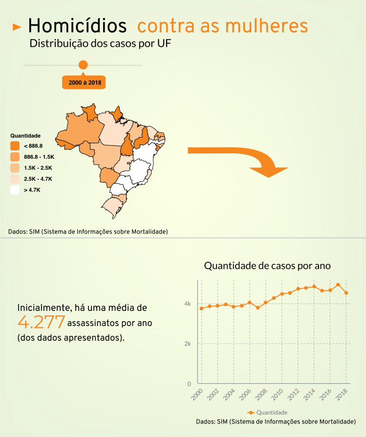 Há quase duas décadas (2000 a 2018) a violência contra a mulher permanece incrustada e realimentada pela estrutura social, econômica e política do Brasil. De acordo com o IPEA (Instituto de Pesquisa Econômica Aplicada) foram registrados , nesse período, 81.278 casos de mulheres vítimas de homicídio. Os principais alvos desses assassinatos, sejam dolosos ou culposos, são em geral mulheres negras.